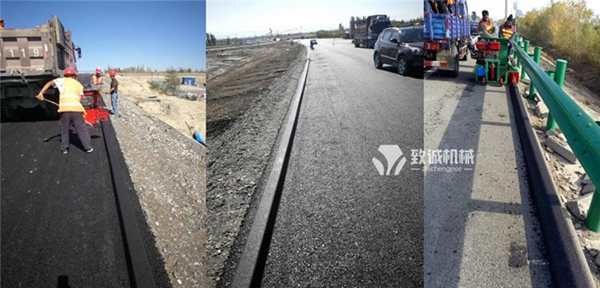 瀝青砂攔水帶機(jī)施工方法: